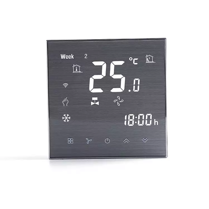 - Термостатите са проектирани да управляват вентилаторни конвектори като включват (On) / изключват (Off) вентилатора на конвектора и вентилите, сравнявайки стайната температура със зададените настройки на желаната температура, за постигане на комфорт в помещенията и пестене на ел. енергия.